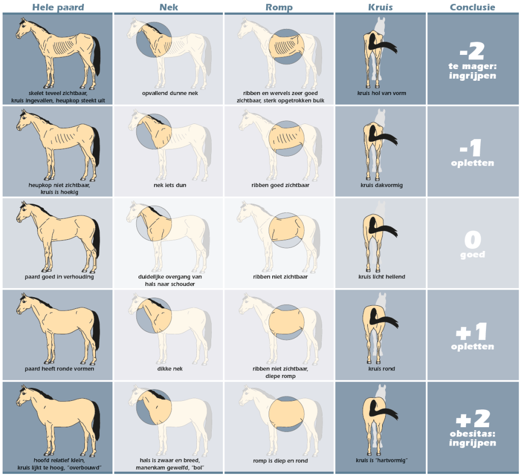 • Let op het gewicht of voedingstoestand (BSC) van je paard. Over- en ondergewicht leiden tot verminderde prestaties.